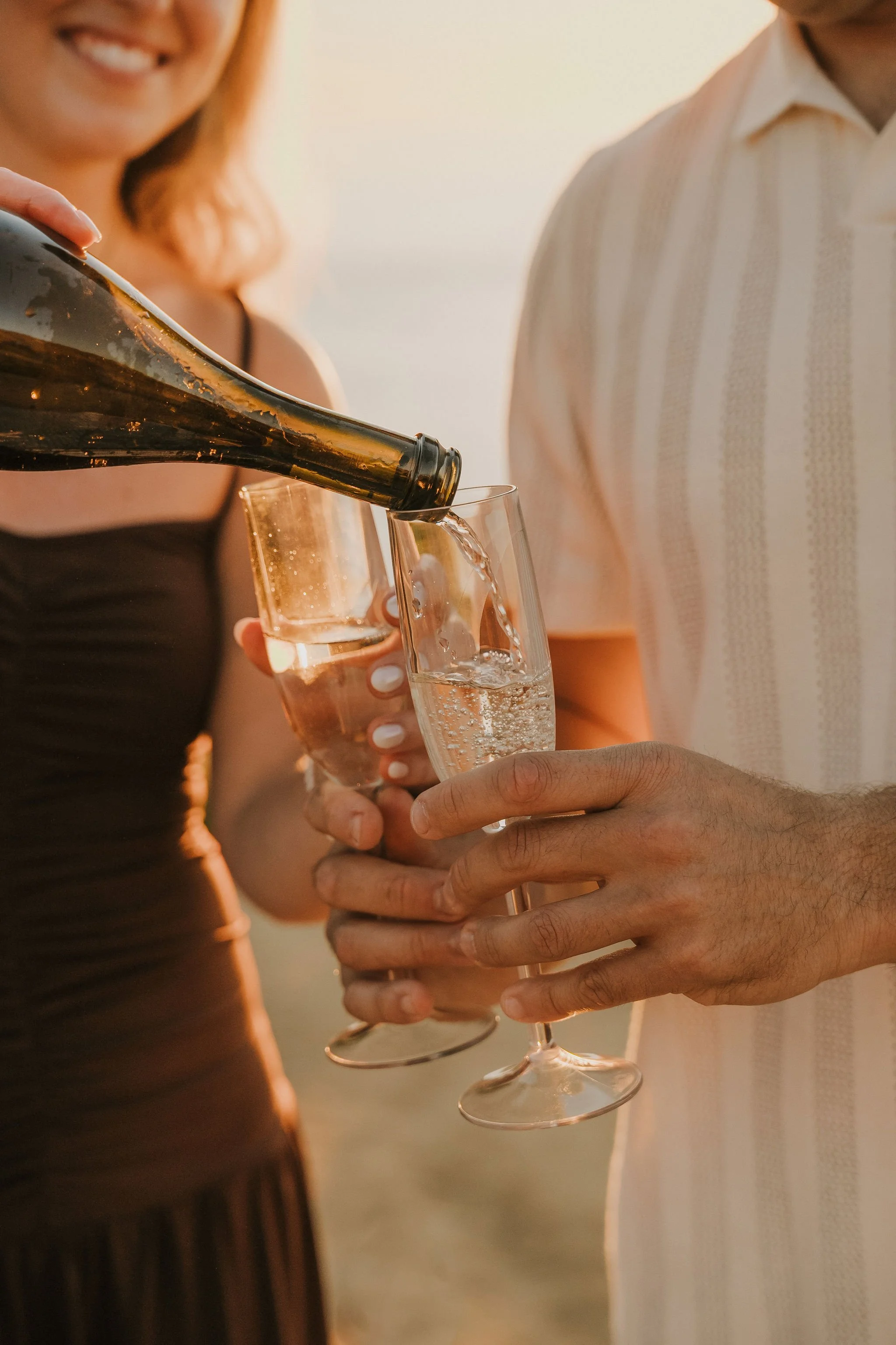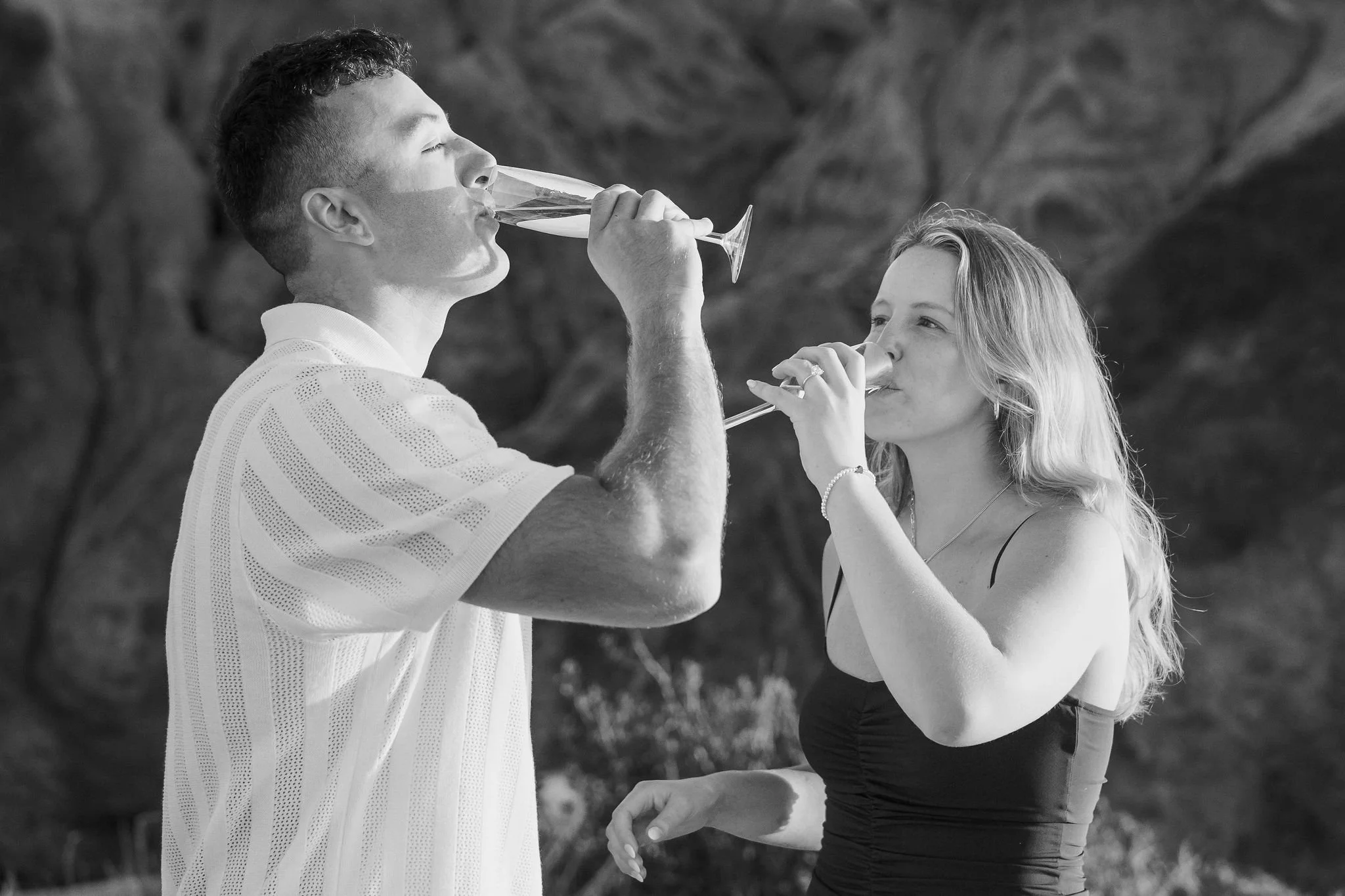 From there we wandered along the cliffs a bit — soaking in the views and capturing candid, warm, and joyful moments filled with love. Then came time for the champagne pop! Dana was given the honors and she nailed it — what a pop it was! They toasted to the future and watched the sun dip below the horizon.